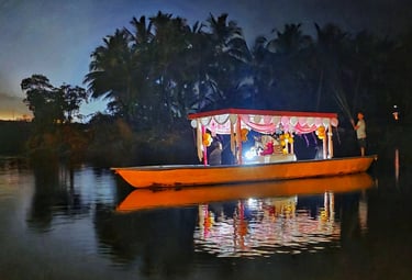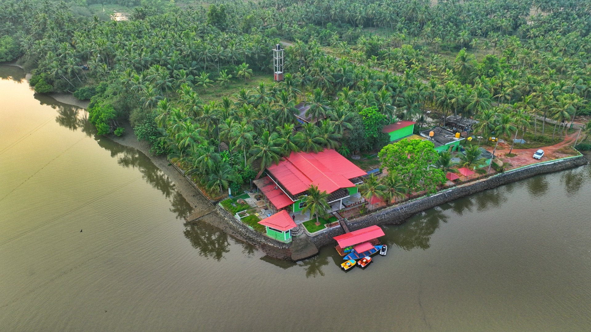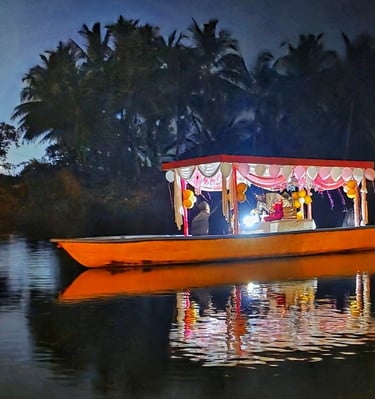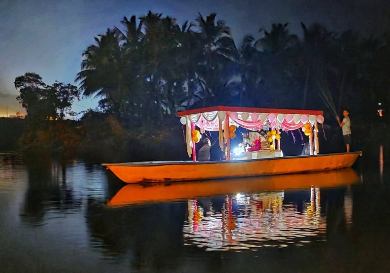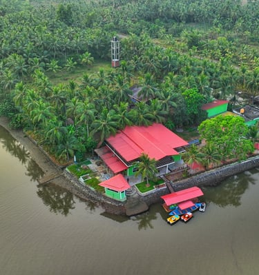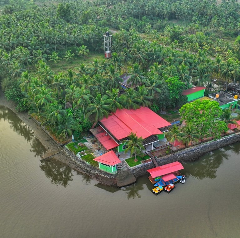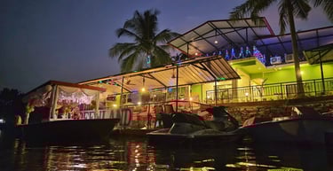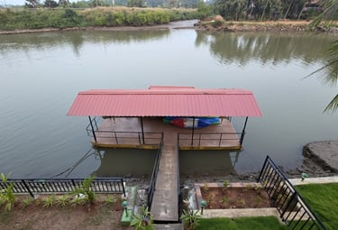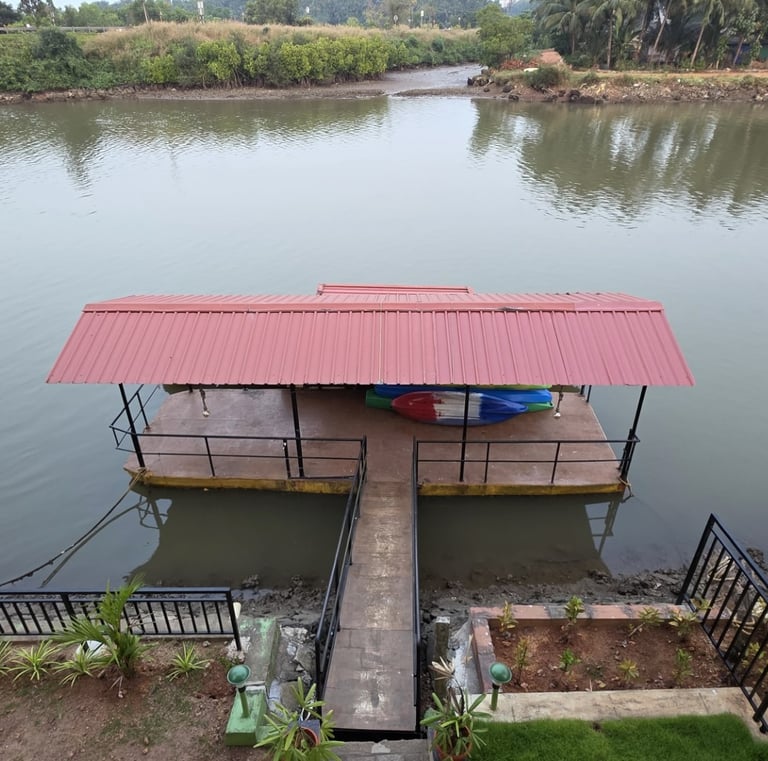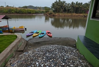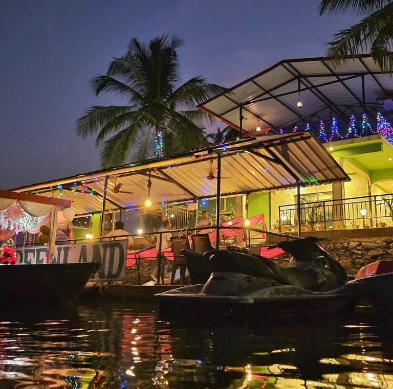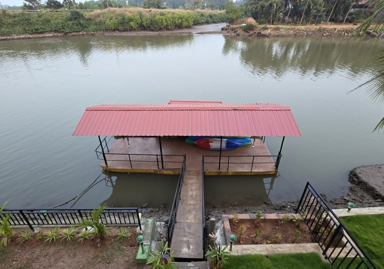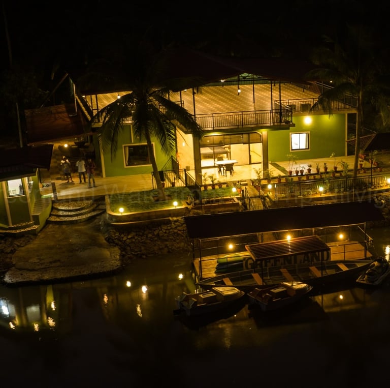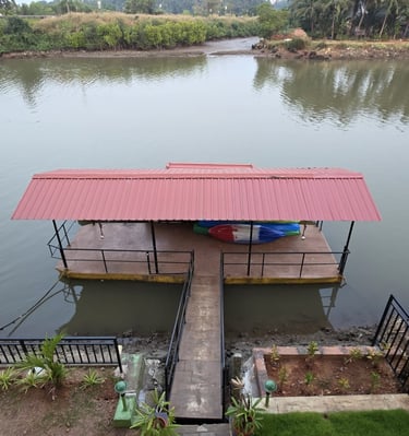 Nestled along the calm waters of the Chakra River and overlooking the Chakra Bridge on National Highway 66, Greenland Waterfront is proudly managed by Trip Nirvigna Hospitality. Offering a rare blend of accessibility and tranquility. Once a boat manufacturing facility, it is now transformed into a peaceful riverfront retreat with cozy rooms, a floating dock, island tours, paddle boating, kayaking, and intimate spaces designed for unforgettable moments with your loved ones—set against the scenic, ever-changing view of vehicles passing by in the distance. We also help you plan and organise intimate riverside events whether it’s a birthday, proposal, sundowner, or family gathering set against a scenic riverfront backdrop with the calm Chakra River, gently moving boats, and the distant charm of vehicles gliding along NH66.